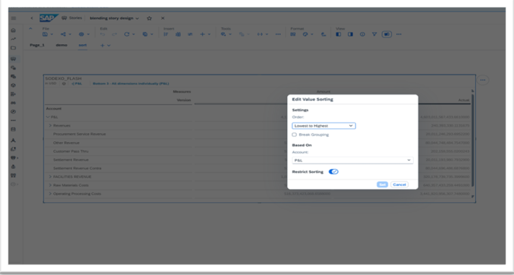 The new Sorting and Ranking enhancements in SAC significantly improve how users analyze large and complex datasets. Designers can now sort data by any dimension, measure, or version with more precision and flexibility than before. The updated dialog allows sorting across rows or columns and supports advanced options like restricting sorting to a particular version or measure. Ranking, which now fully replaces the old Top N feature, lets users generate ranked insights across all dimensions or within each dimension individually. This is especially beneficial for business scenarios such as identifying the Top 10 performing regions, highest revenue products, or lowest cost centers. These enhancements make it easier for both business users and analysts to derive meaningful insights quickly while maintaining full control over sorting logic.